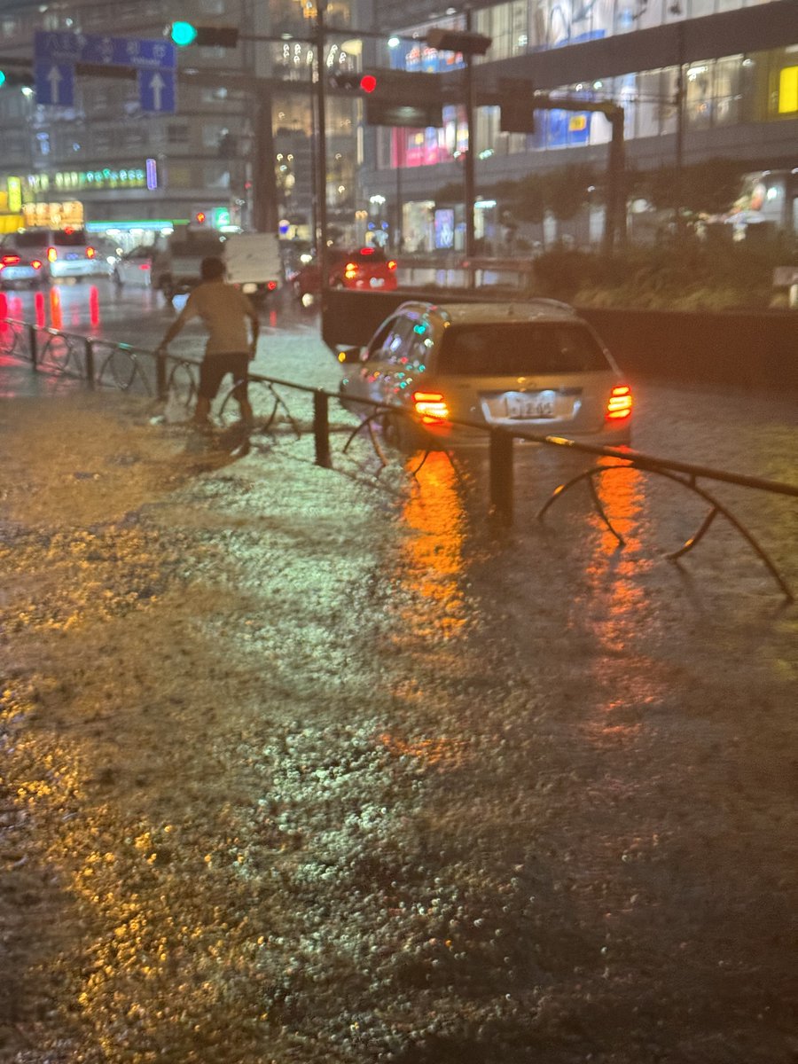 新宿ライブカメラ車道が川みたい。傘無い人みんなスケスケw