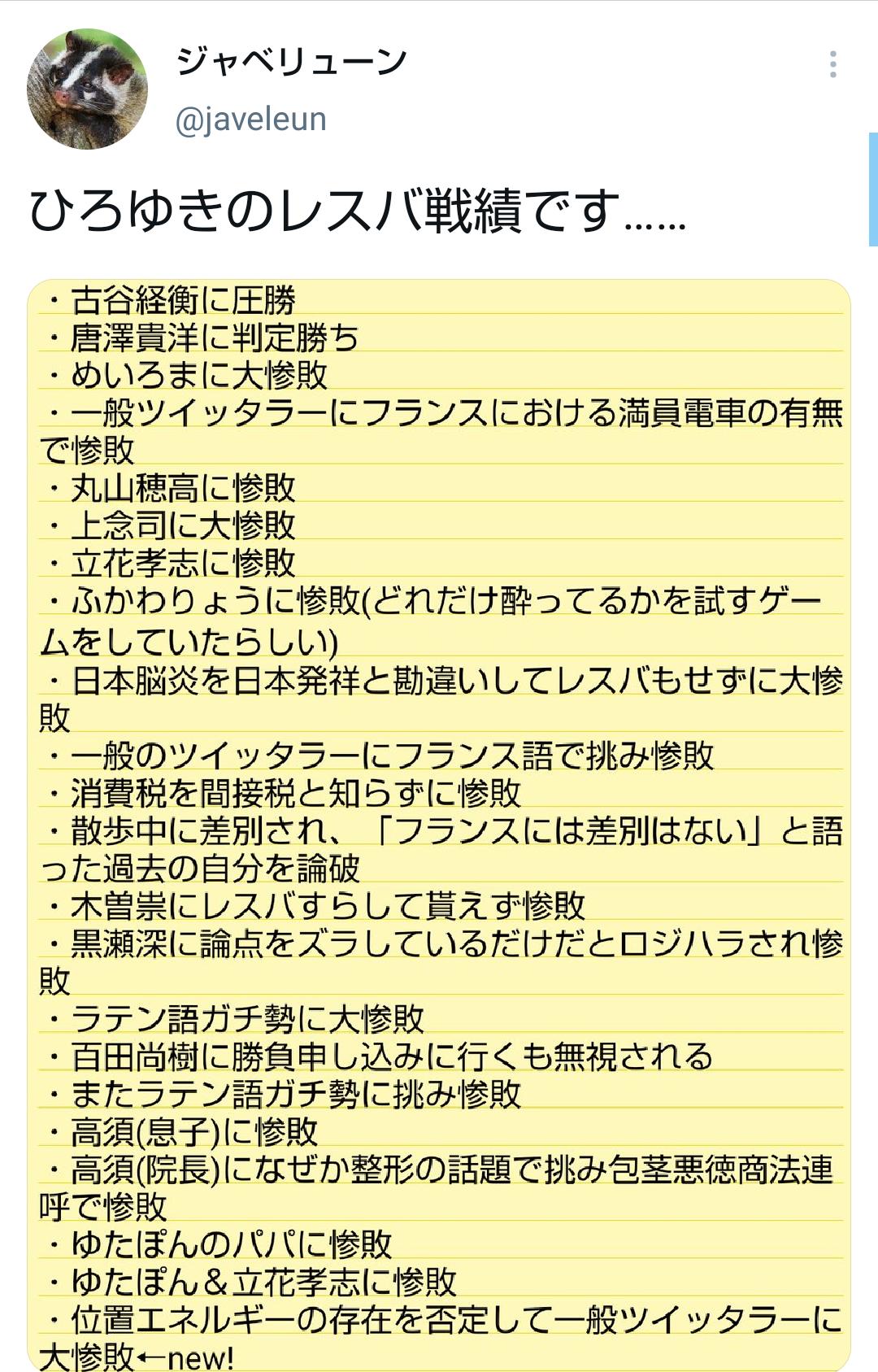 ・一般のツイッタラーにフランス語で挑み惨敗