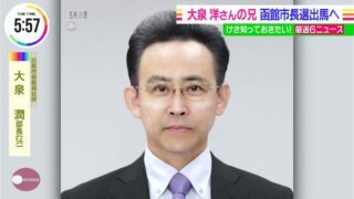 俳優の大泉洋さんの実の兄で、函館市元部長の大泉潤さんがきょう、函館市内で記者会見し、来年春の市長選への出馬を正...