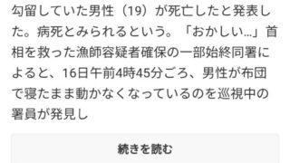 「おかしい…」首相を救った漁師容疑者確保の一部始終同署によると、16日午前4時45分ごろ、 男性が布団で寝...